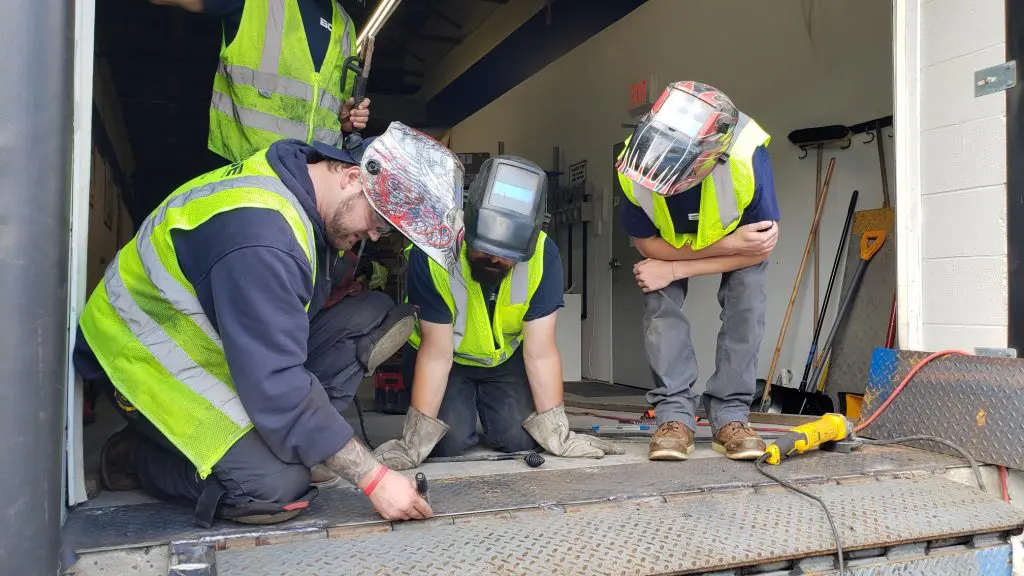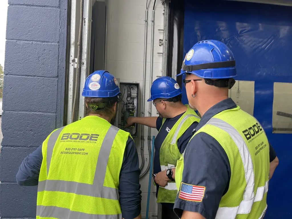 They are OSHA-10 certified, forklift, man lift certified, factory trained in loading dock equipment, fire-rated roll-up doors, overhead doors, high speed doors, VRCs, VLMs, along with various other solutions and systems.