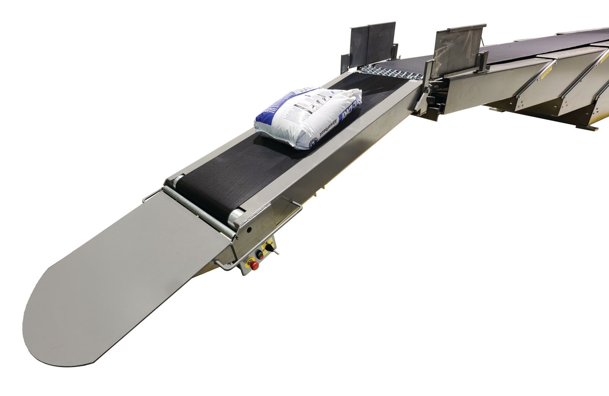 These conveyors are designed to extend into trailers and assist in maneuvering products in or out. This allows just one or a few employees to stay at the end of the conveyor and begin unloading or loading as the conveyor moves items from one end to the other.