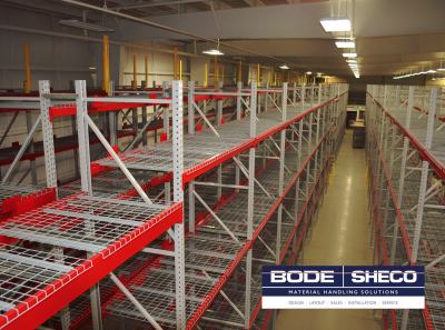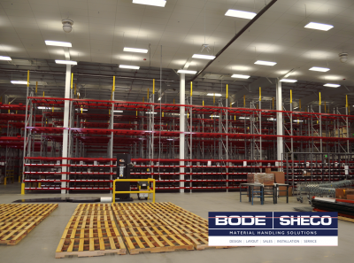 This attention to detail and quality, combined with the smooth communication flow and collaborative spirit, won Bode the project. Two hundred and two bays of pallet racking, over 220 uprights, 1,700 beams, 99 bays of shelving, 616 full-width carton flow lanes, and a variety of aisle and upright protectors were installed in just two weeks despite weather delays and project change orders.