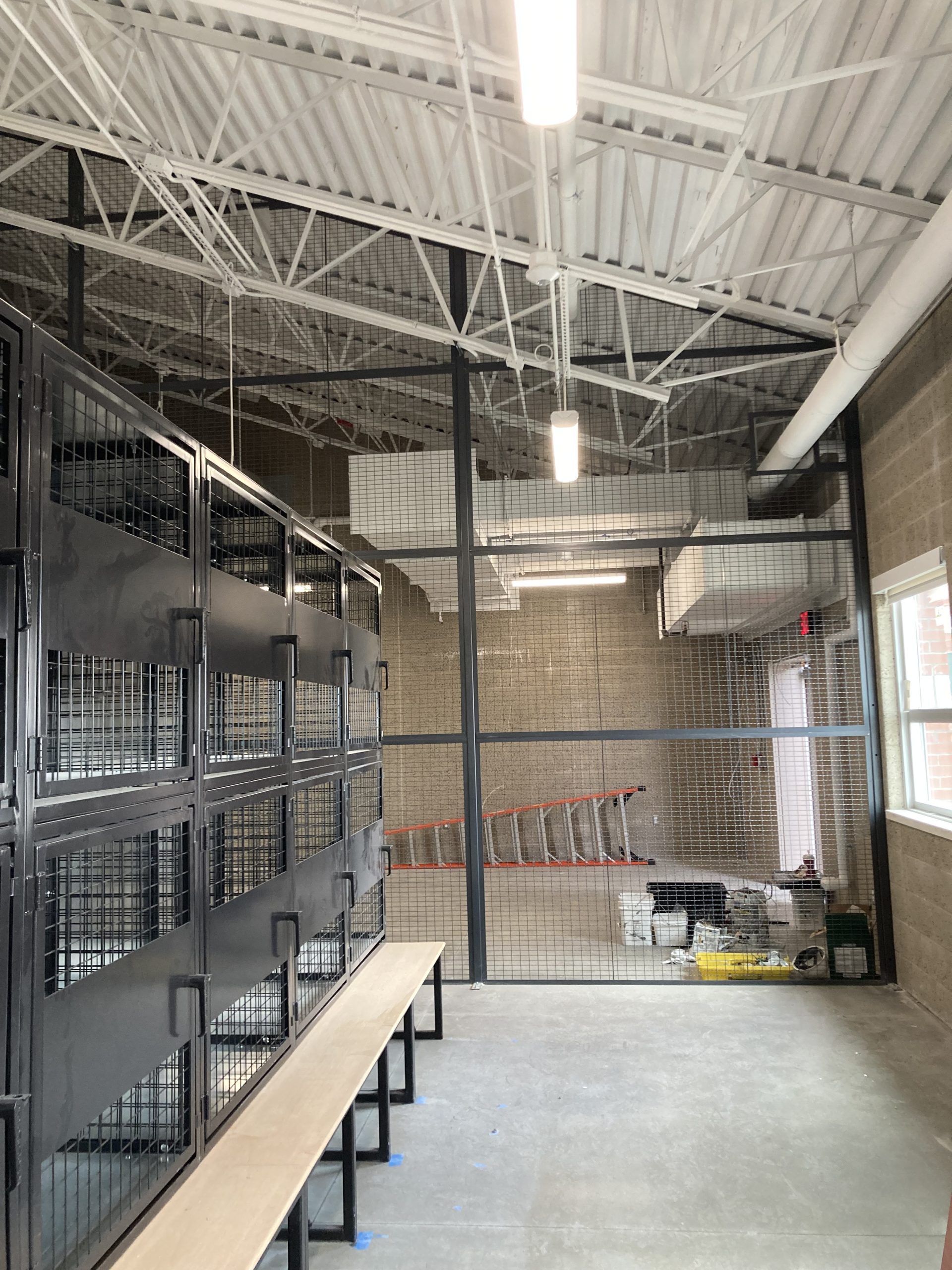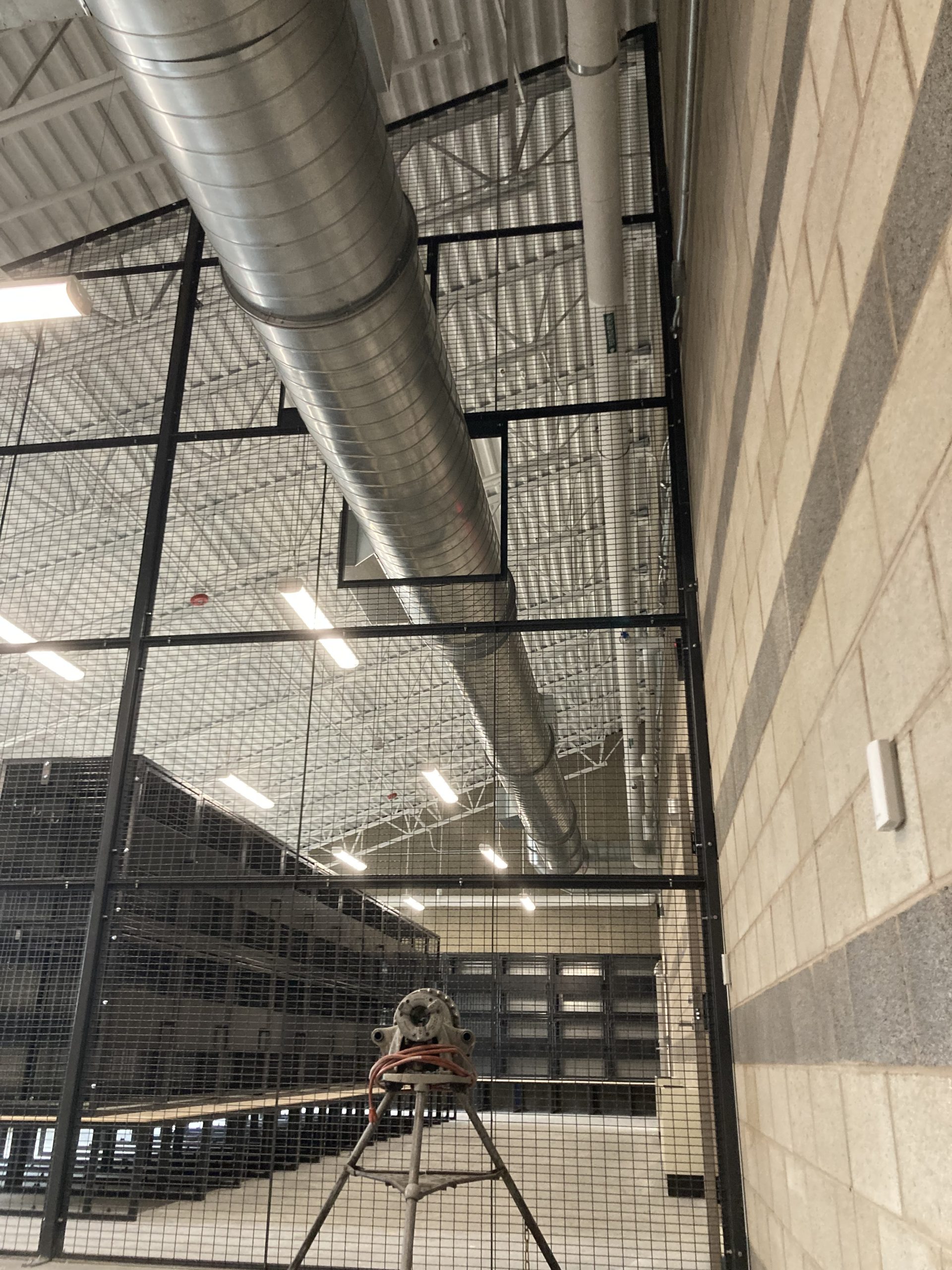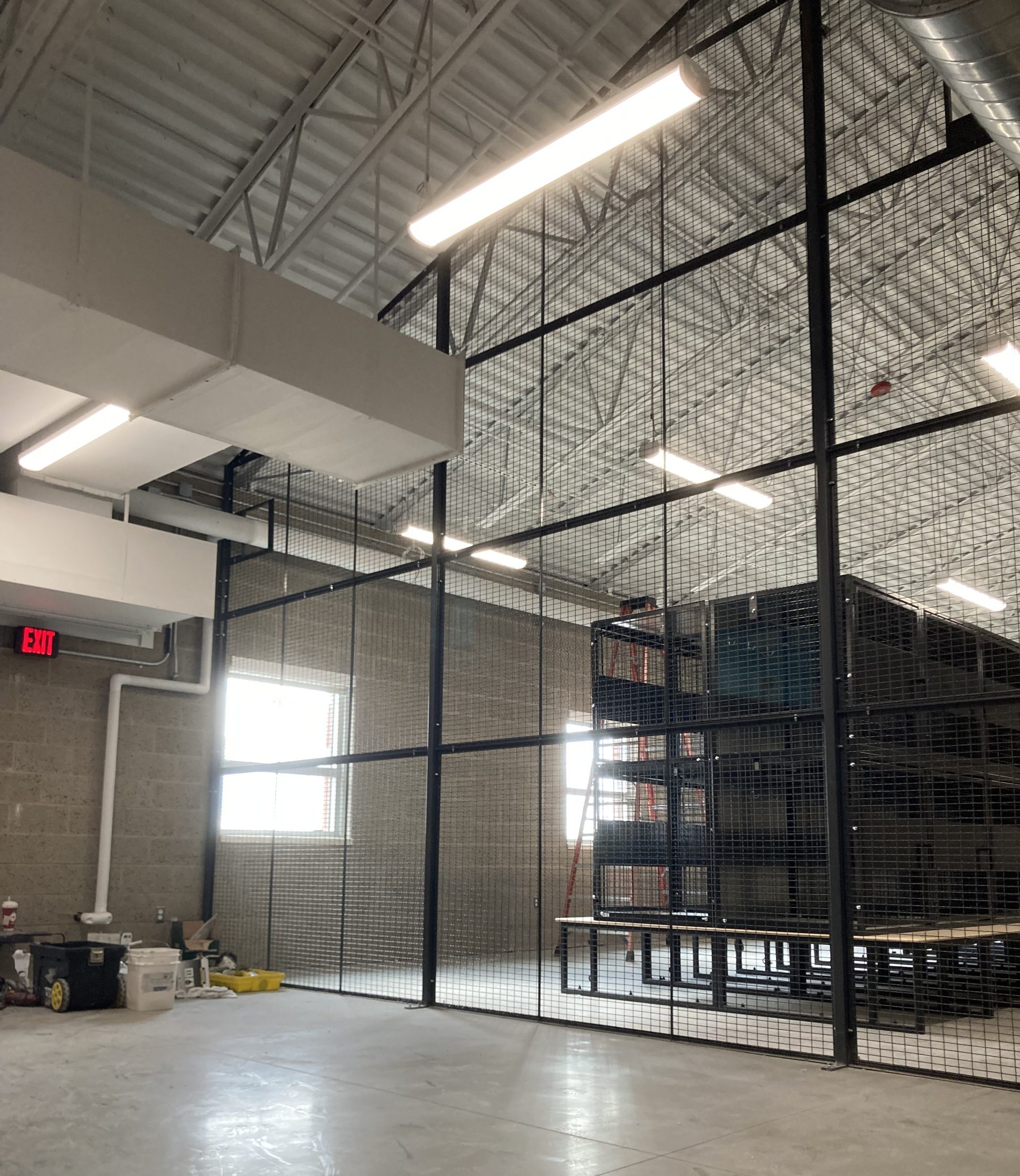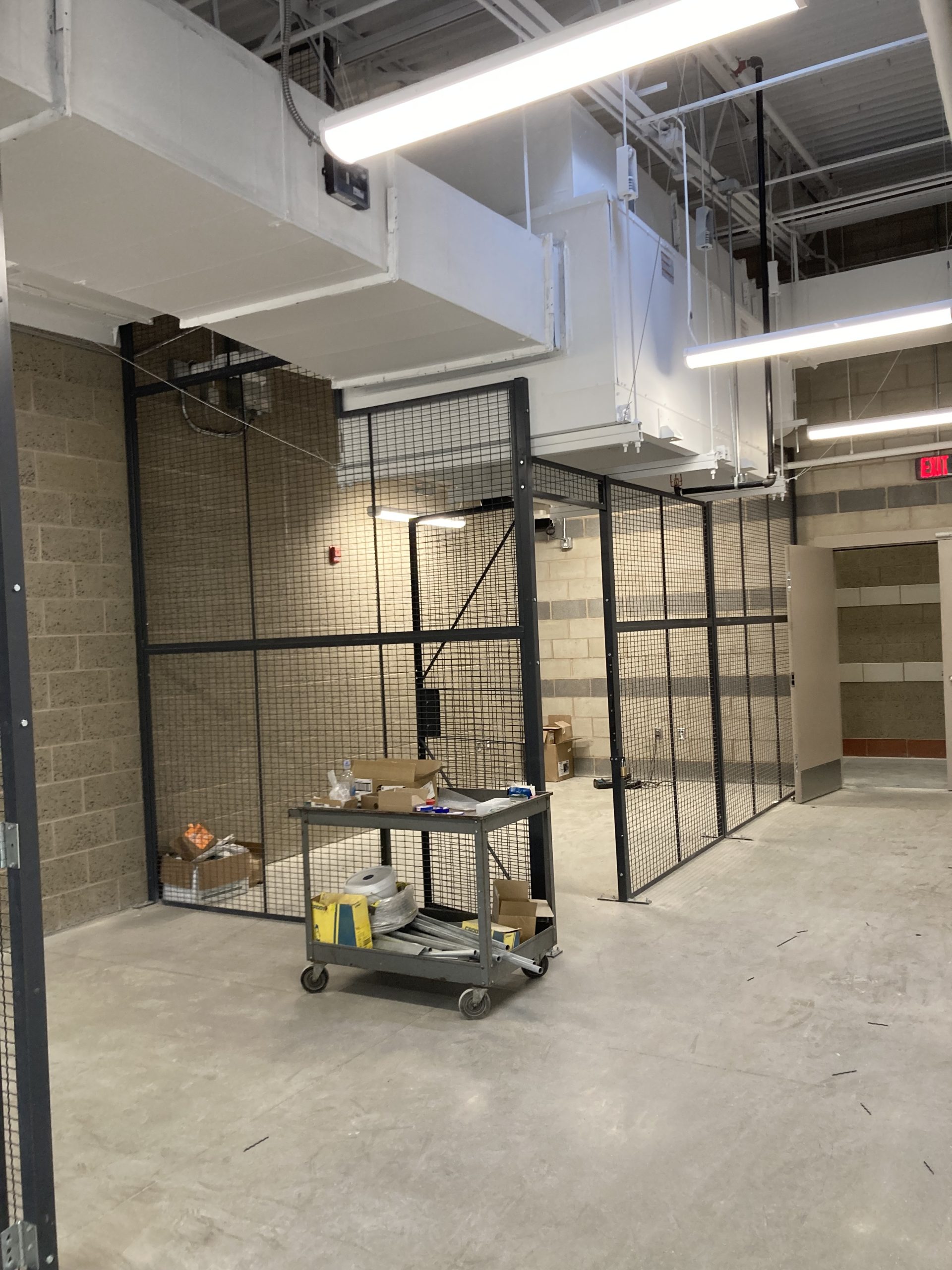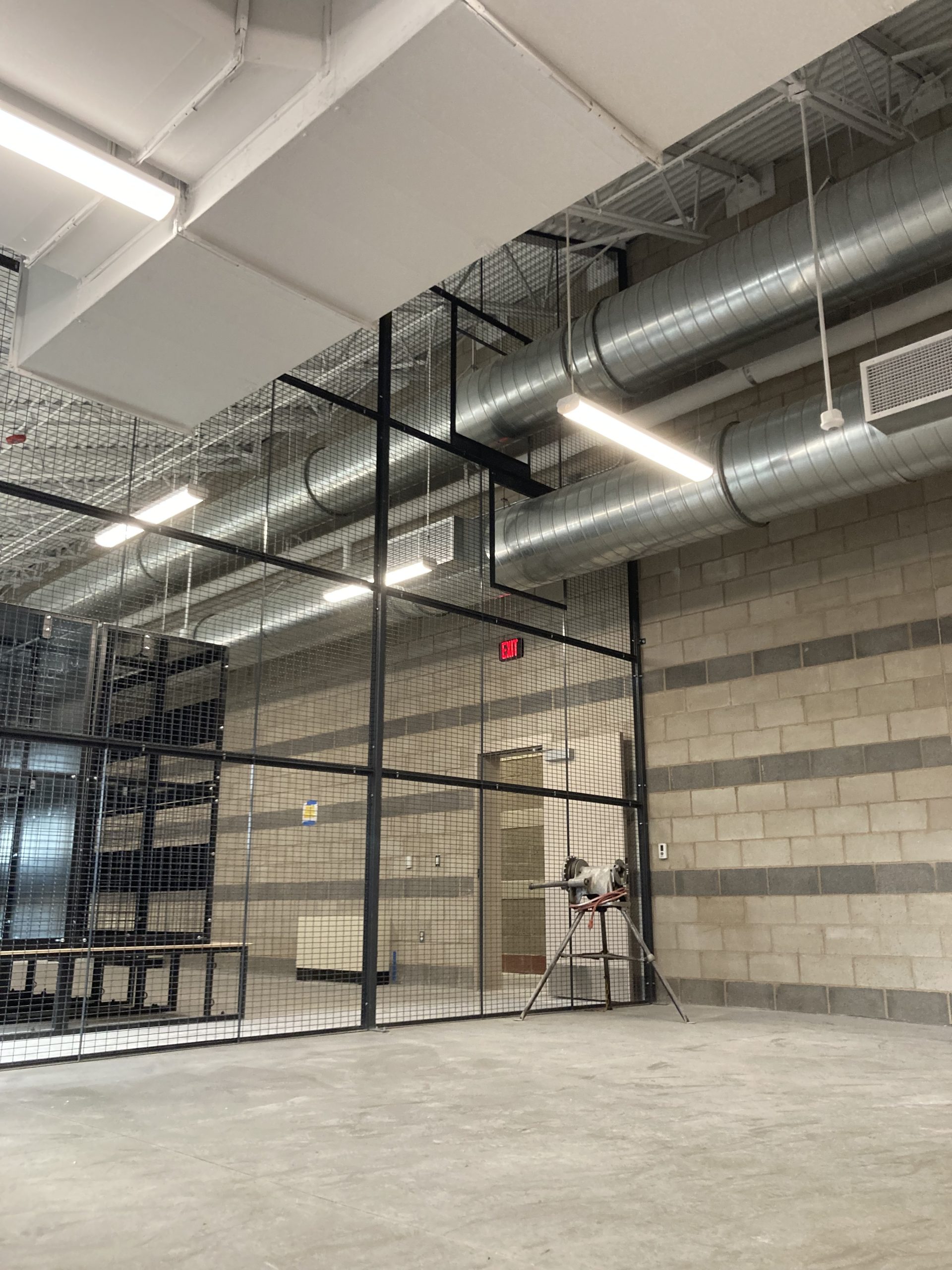 Our solution was to implement wire partitioning and panels with customized measurements and pass-throughs in order to allow any pipes and air vents to but unimpeded within the facility.