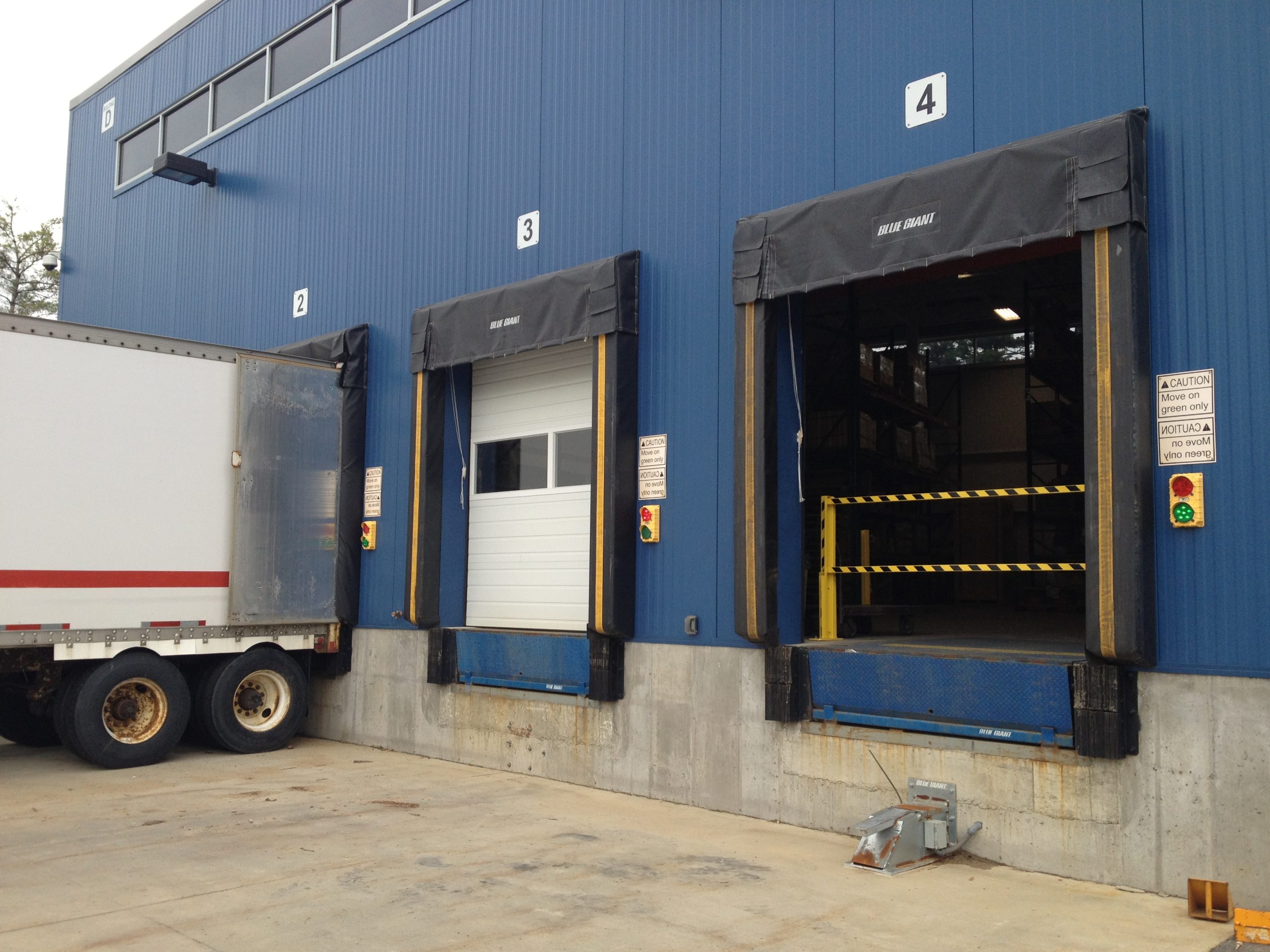 Dock shelters use fabric curtains to enclose the trailer, offering a flexible solution for various truck and dock sizes. While they create a solid barrier against the elements, such as rain and snow, they don’t offer the same level of temperature control as dock seals. Additionally, they take up more space around the dock door, which may be a problem in tight spaces. Both seals and shelters are a great option for keeping out the elements, such as rain and snow, however it is important to know the benefits and drawbacks of each to choose the right solution for your facility!Truck Restraints